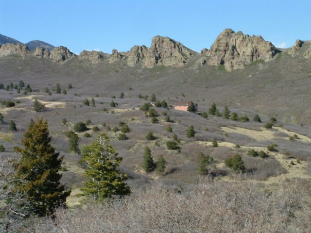 More of the east dike. A spectacular lot of 5.49 acres in Tres Valles overlooking the large valley of Commons Area and facing the great dike wall, home to a large elk herd and numerous bighorn sheep. Life here with binoculars or a telescope would be heaven for game-watching. Accessible from a cul-de-sac at the top of the lot or a main road at the bottom, it is a choice piece of gently sloped land, with views of the famous Spanish Peaks included. Community water system and underground utilities to the lot line. Only six miles from the charming town of La Veta.