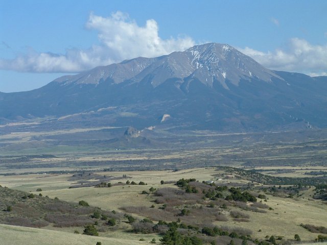 South to the West Spanish Peak. A spectacular lot of 5.49 acres in Tres Valles overlooking the large valley of Commons Area and facing the great dike wall, home to a large elk herd and numerous bighorn sheep. Life here with binoculars or a telescope would be heaven for game-watching. Accessible from a cul-de-sac at the top of the lot or a main road at the bottom, it is a choice piece of gently sloped land, with views of the famous Spanish Peaks included. Community water system and underground utilities to the lot line. Only six miles from the charming town of La Veta.
